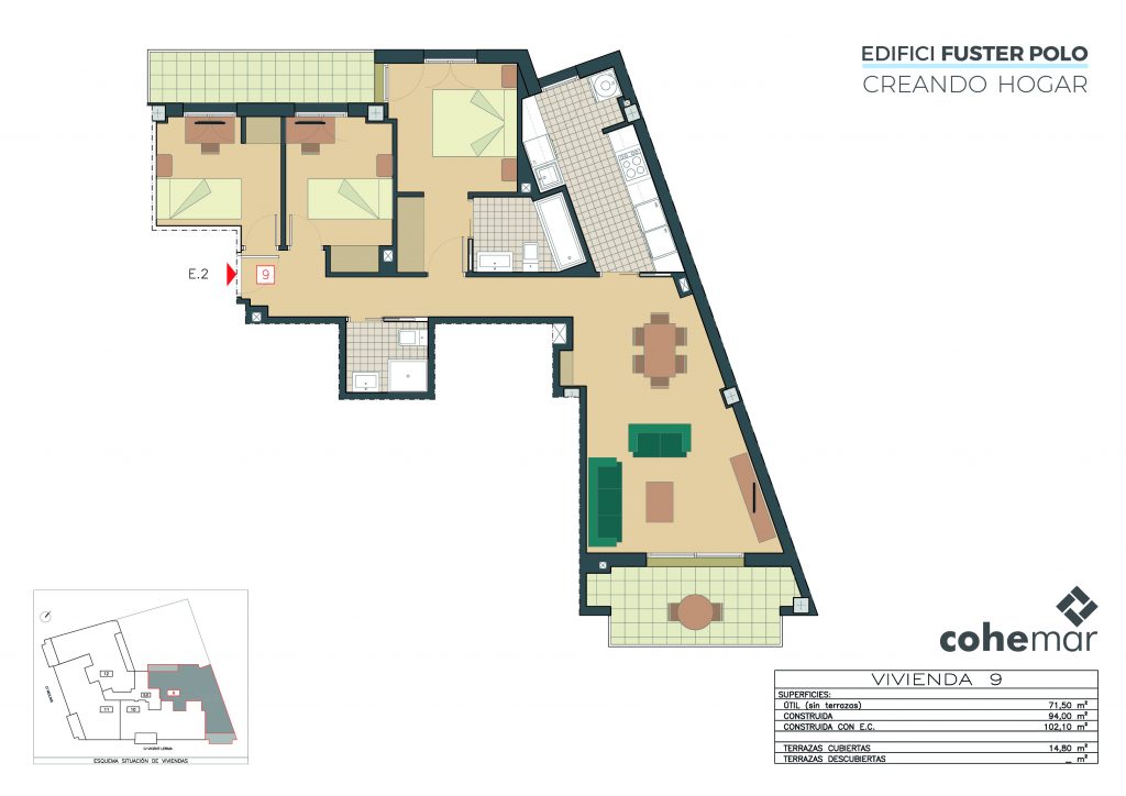 Vivienda de 93,40 m2 personalizable (admite cambios en nº habitaciones) y con una terraza cubierta de 7,10 m2 .